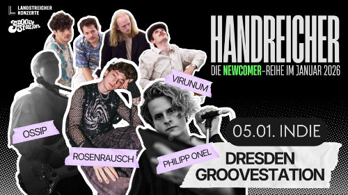 Landstreicher Konzerte möchte 2026 mit euch gemeinsam etwas Neues starten: Unsere Newcomer-Reihe Handreicher in der GrooveStation Dresden!